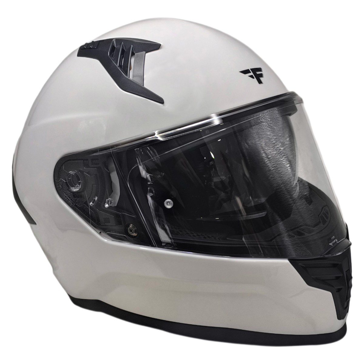 Κράνος FSD 910 Full Face εσωτερική ζελατίνα άσπρο Το κράνος FSD 910 Full Face με εσωτερική ζελατίνα σε λευκή απόχρωση είναι ένα full face κράνος που συνδυάζει υψηλή προστασία με πρακτική λειτουργικότητα, ιδανικό για καθημερινή χρήση και ταξίδια. Διαθέτει στιβαρό κέλυφος με ολοκληρωμένη κάλυψη κεφαλιού και πηγουνιού, ενσωματωμένη εσωτερική ζελατίνα που ανοίγει εύκολα για προστασία από τον ήλιο, καθώς και εξωτερική ζελατίνα με ευρύ οπτικό πεδίο και αντιθαμβωτική επίστρωση για καθαρή όραση σε διάφορες συνθήκες. Η άνετη, αφαιρούμενη και πλενόμενη εσωτερική επένδυση με αποτελεσματικό αερισμό προσφέρει άνεση ακόμη και σε μεγαλύτερες διαδρομές, καθιστώντας το κράνος μια ολοκληρωμένη επιλογή για οδηγούς που θέλουν ασφάλεια και άνεση.