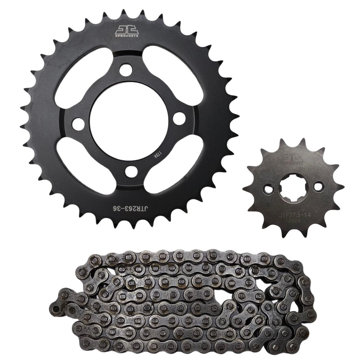 Αλυσιδογράναζα 14Δ 36Δ 428HDR Daytona Velos 125 JT Τα αλυσιδογράναζα 14Δ και 36Δ 428HDR Daytona Velos 125 JT είναι εξαρτήματα που χρησιμοποιούνται σε μοτοσικλέτες, ειδικά σε μοντέλα όπως η Daytona Velos 125. Το 14Δ αναφέρεται στον αριθμό των δοντιών του μπροστινού γραναζιού, ενώ το 36Δ αναφέρεται στον αριθμό των δοντιών του πίσω γραναζιού. Ο κωδικός 428HDR δηλώνει τον τύπο της αλυσίδας, η οποία είναι ικανή να αντέχει σε υψηλές δυνάμεις και φθορές, προσφέροντας καλύτερη απόδοση και διάρκεια ζωής. Αυτά τα γρανάζια συνεργάζονται για να παρέχουν την κατάλληλη αναλογία μετάδοσης για βελτιωμένη επιτάχυνση και απόδοση της μοτοσικλέτας.