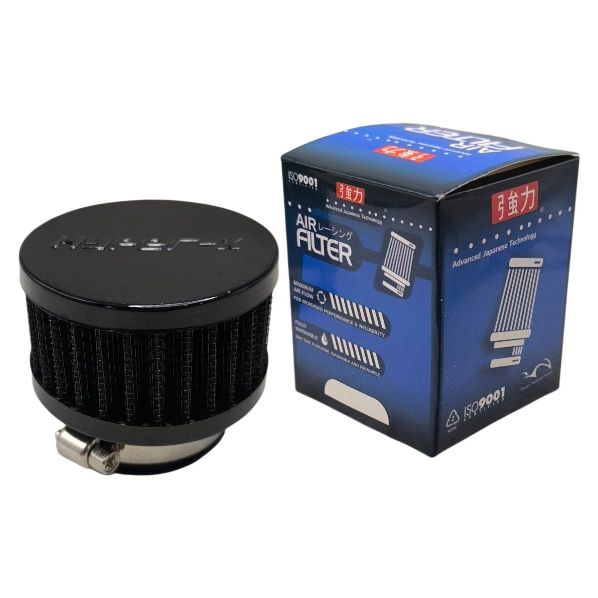 Φιλτροχοάνη 38mm στρογγυλή racing HYPER-X μαύρη Η φιλτροχοάνη 38mm στρογγυλή Racing HYPER-X μαύρη είναι ένα φίλτρο αέρα σχεδιασμένο για βελτιωμένη ροή αέρα και καλύτερη απόκριση στον κινητήρα, ιδανικό για παπιά, μοτοσικλέτες ή βελτιωμένες εφαρμογές. Διαθέτει στρογγυλή κατασκευή με διάμετρο λαιμού 38mm, υψηλής πυκνότητας φίλτρο για αποτελεσματικό φιλτράρισμα και ανθεκτικό μαύρο περίβλημα που προσφέρει στιβαρότητα και sporty εμφάνιση.