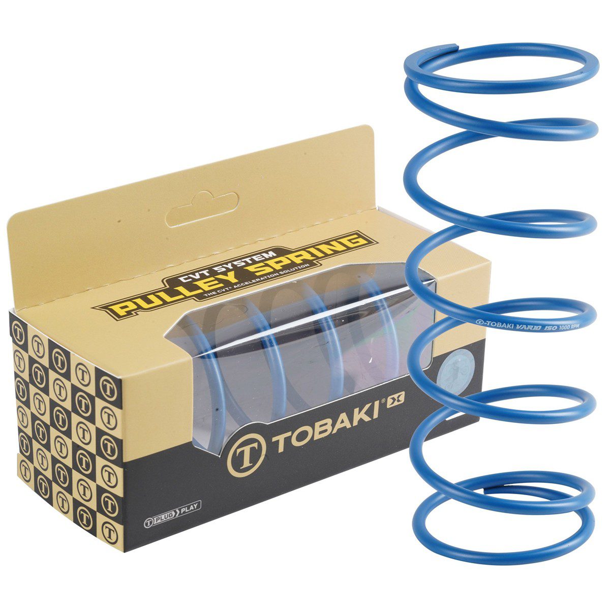 Ελατήριο τραχαλίας Racing 1000RPM (+10%) Honda Vario / Honda PCX 150 TOBAKI μπλέ Το ελατήριο τροχαλίας Racing 1000RPM (+10%) για Honda Vario / Honda PCX 150 της TOBAKI σε μπλε χρώμα είναι ενισχυμένο ελατήριο για το σύστημα CVT που αυξάνει τη σκληρότητα, βελτιώνοντας τη λειτουργία της μετάδοσης και την απόκριση στο άνοιγμα του γκαζιού. Με περίπου +10% μεγαλύτερη αντίσταση, βοηθά στην πιο άμεση επιτάχυνση και καλύτερη διατήρηση της δύναμης σε χαμηλές και μεσαίες στροφές, ενώ η ανθεκτική κατασκευή του το καθιστά κατάλληλο για καθημερινή αλλά και πιο απαιτητική χρήση, προσφέροντας σταθερή και αξιόπιστη απόδοση.