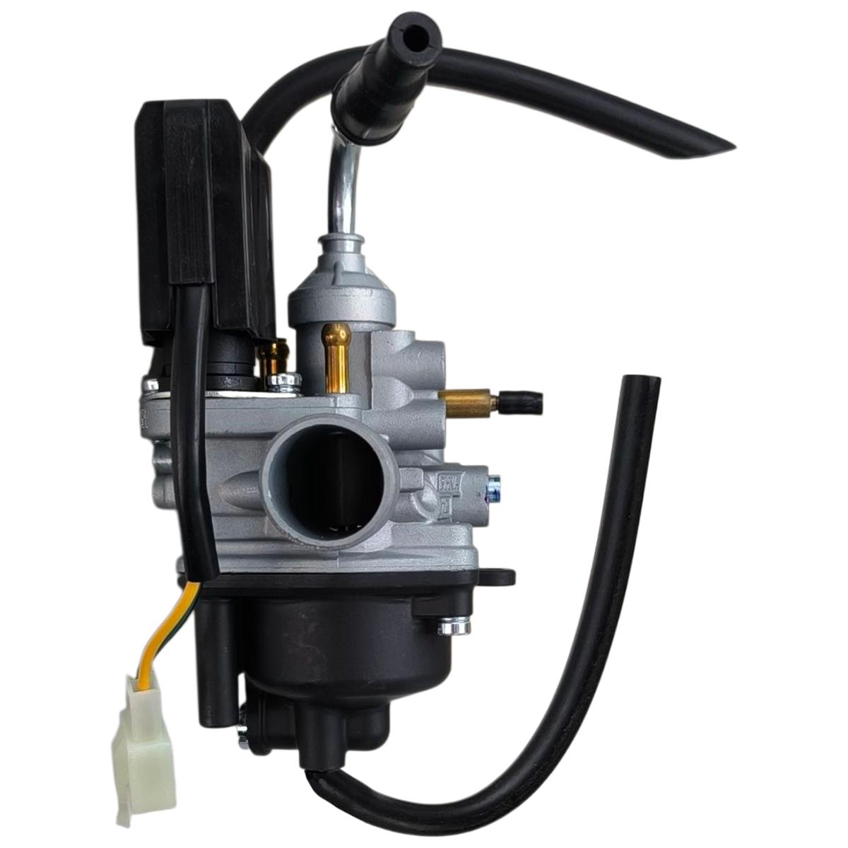 Καρμπυρατέρ Yamaha Neos 50 2T Το καρμπυρατέρ του Yamaha Neos 50 2T είναι ένα βασικό μηχανικό εξάρτημα που έχει σχεδιαστεί για να εξυπηρετεί τις ανάγκες ενός δίχρονου κινητήρα μικρού κυβισμού. Πρόκειται για ένα καρμπυρατέρ μικρής διατομής, το οποίο εξασφαλίζει την κατάλληλη αναλογία καυσίμου και αέρα για σωστή καύση. Διαθέτει βασικά υποσυστήματα όπως κύριο και ρελαντί ζιγκλέρ (jets), βελόνα ψεκασμού, τσοκ για εύκολη εκκίνηση και ρυθμιστές για το ρελαντί και τη μίξη. Η λειτουργία του είναι κρίσιμη για την ομαλή εκκίνηση, την απόκριση στο γκάζι και τη συνολική απόδοση του κινητήρα. Το συγκεκριμένο μοντέλο καρμπυρατέρ έχει απλή, αξιόπιστη κατασκευή, εύκολη συντήρηση και αποτελεί ιδανική λύση τόσο για εργοστασιακή χρήση όσο και για μικρές αναβαθμίσεις.